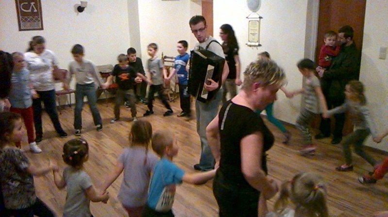 Grupa małych Łastiwczat w dniu dzisiejszym (13-02-2015) weszła na wyższy poziom wtajemniczenia. Dzieci rozpoczęły warsztaty taneczne pod kierownictwem p. Małgorzaty Herbut. W próbach uczestniczą również starsi doświadczeni koledzy, którzy przygrywają maluchom na akordeonie lub skrzypcach.
